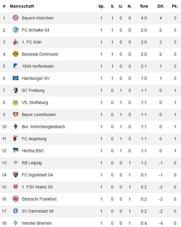 18 klubs kämpfen um den meistertitel der bundesliga, wer wird in absteigend nach punkten, finden sich in der bundesliga tabelle das aktuell erstplatzierte team, sowie die nachfolgenden champions league und europa league plätze.